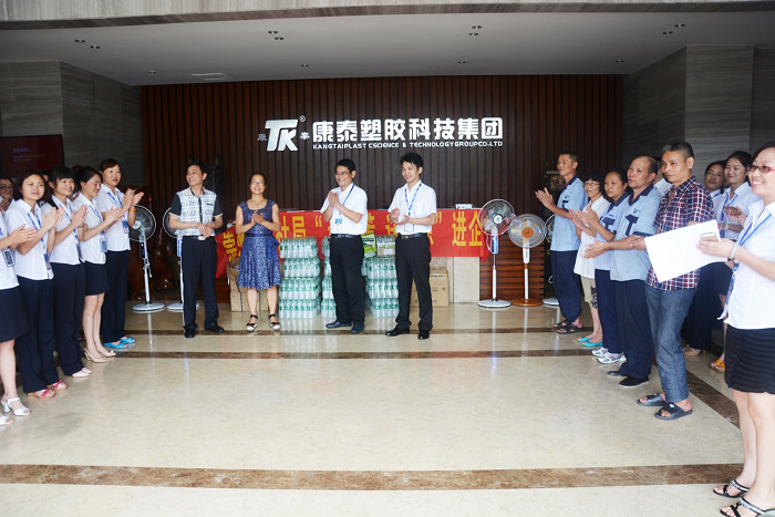 8月7日下午,崇州市人力資源和社會保障局副局長、工會主席李茂清帶領(lǐng)局“送清涼”慰問組,來到康泰塑膠科技集團(tuán)有限公司,工會主席吳彬及人事行政中心呂旭梅經(jīng)理接待了慰問組。人社部門為公司職工送上了電風(fēng)扇、礦泉水、和防暑物品,并將有關(guān)勞動安全、工資待遇等內(nèi)容的人社政策宣傳資料送到職工手中,使職工進(jìn)一步了解有關(guān)政策法規(guī),依法主動保護(hù)自身合法權(quán)益。